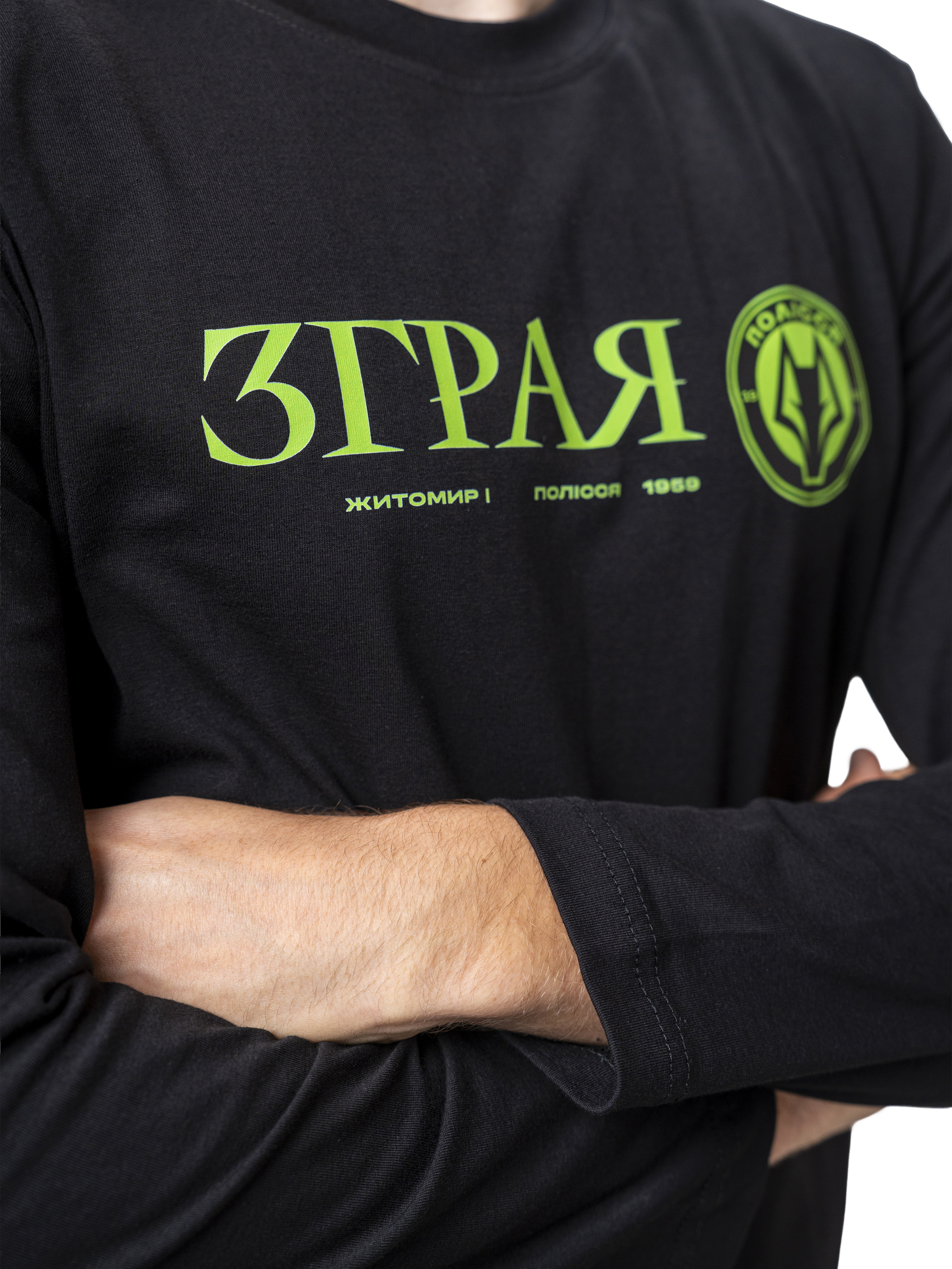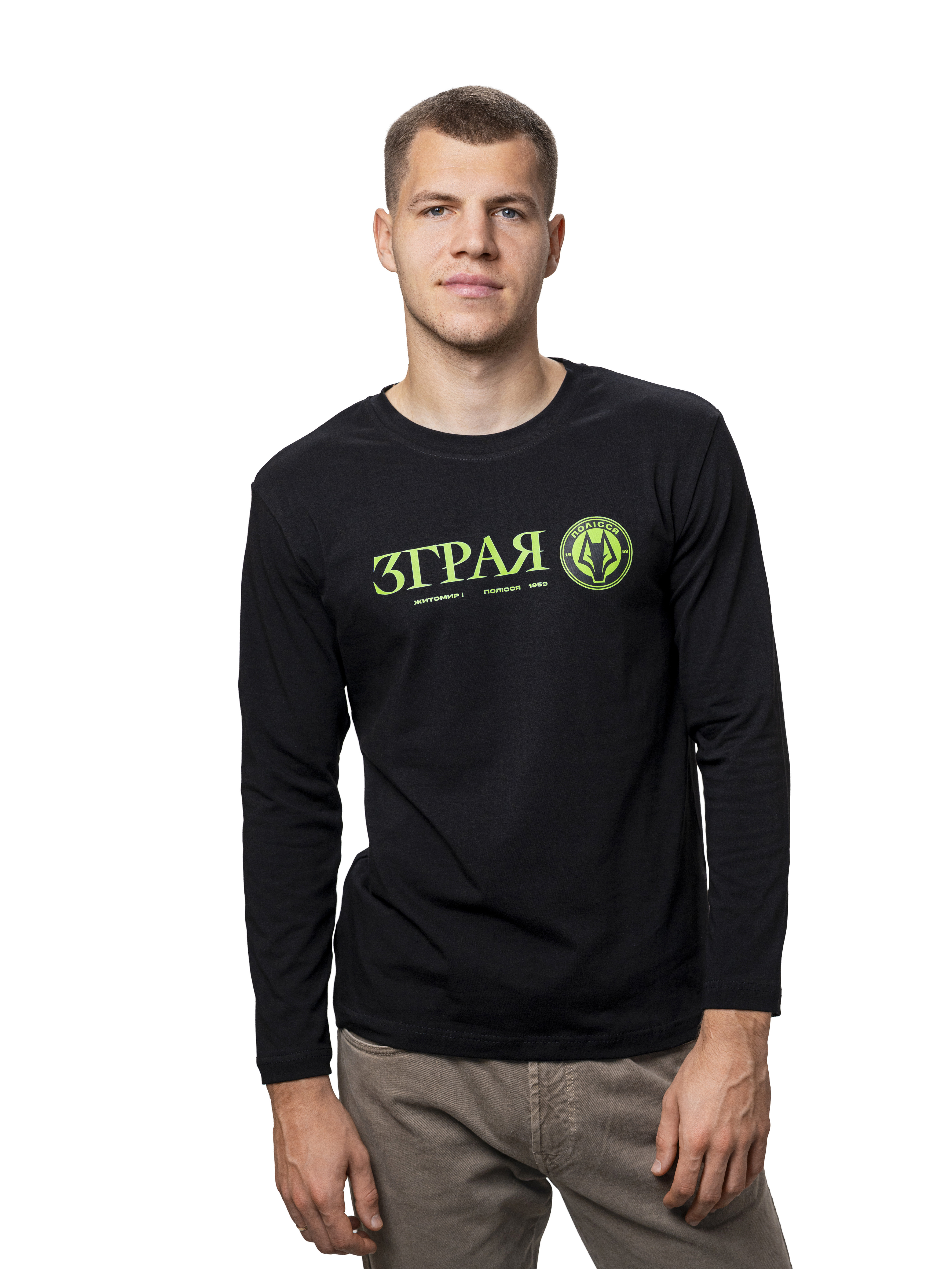 Лонгслів базового крою з вишуканим дизайном. На грудях розміщений логотип футбольного клубу Полісся, який додає стилю та підкреслює вашу прихильність до команди.