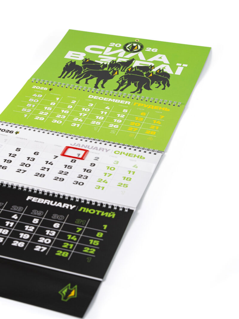 – Матеріал: Календар друкується на високоякісному крейдованому папері щільністю 450 г/м², що забезпечує довговічність та привабливий вигляд.